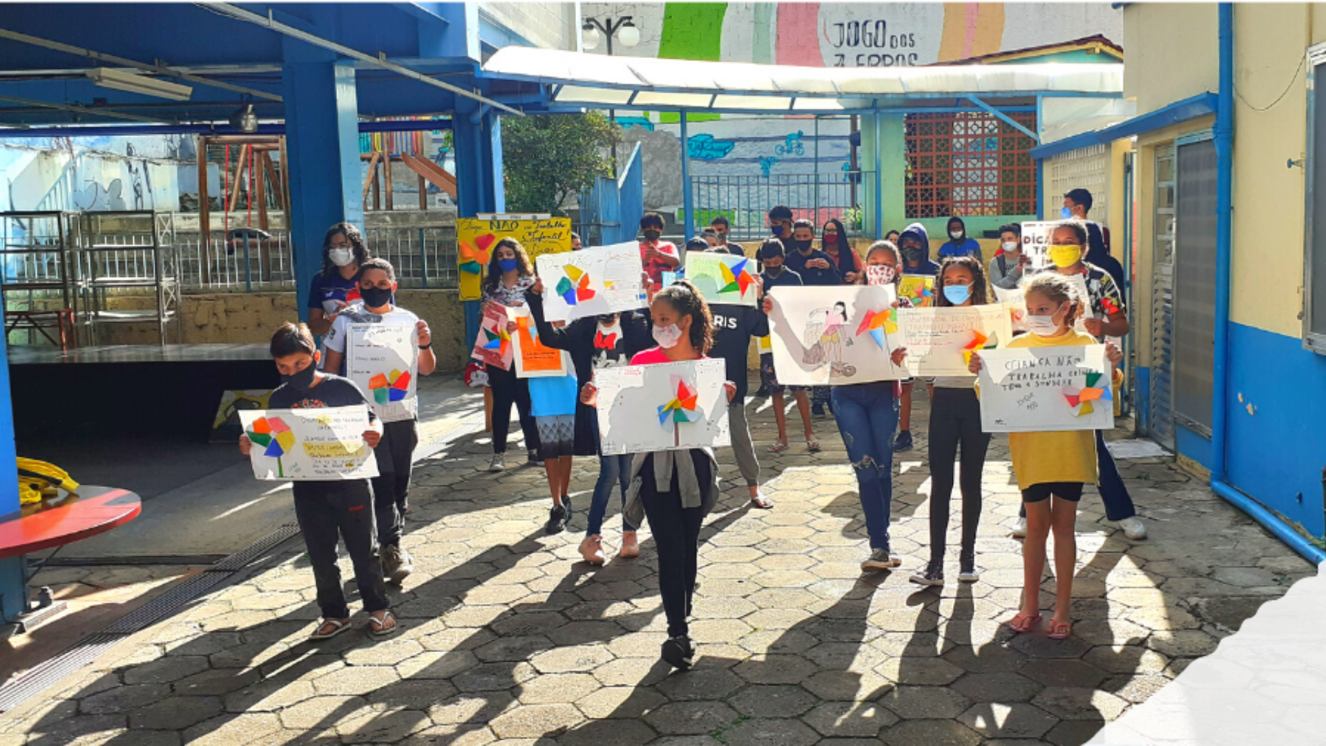 “Criança Não trabalha, criança tem é ‘que’ sonhar!” dizia o cartaz de uma das crianças do CCA PROVIM