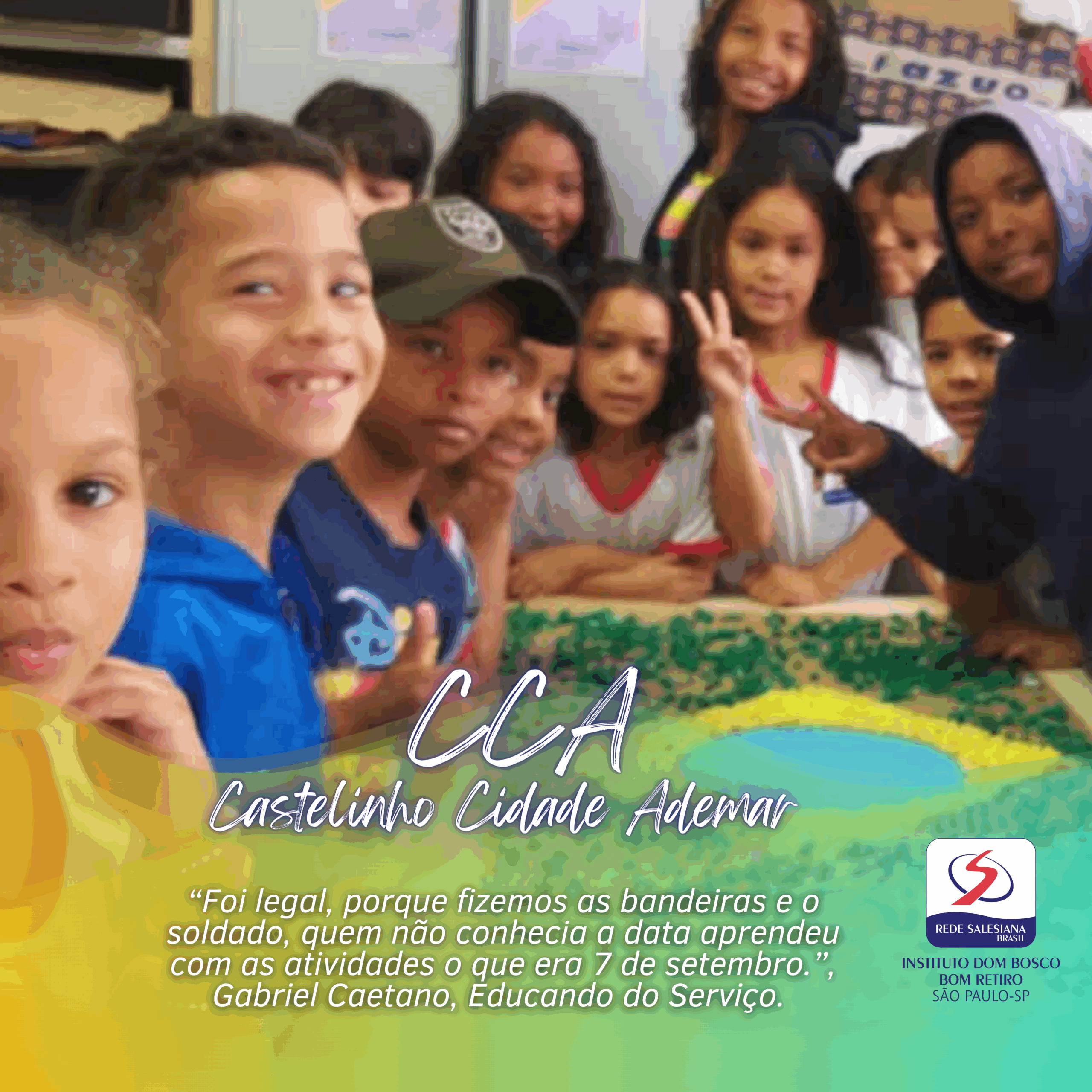 “Foi legal, porque fizemos as bandeiras e o soldado, quem não conhecia a data aprendeu com as atividades o que era 7 de setembro.”, Gabriel Caetano, Educando do Serviço.