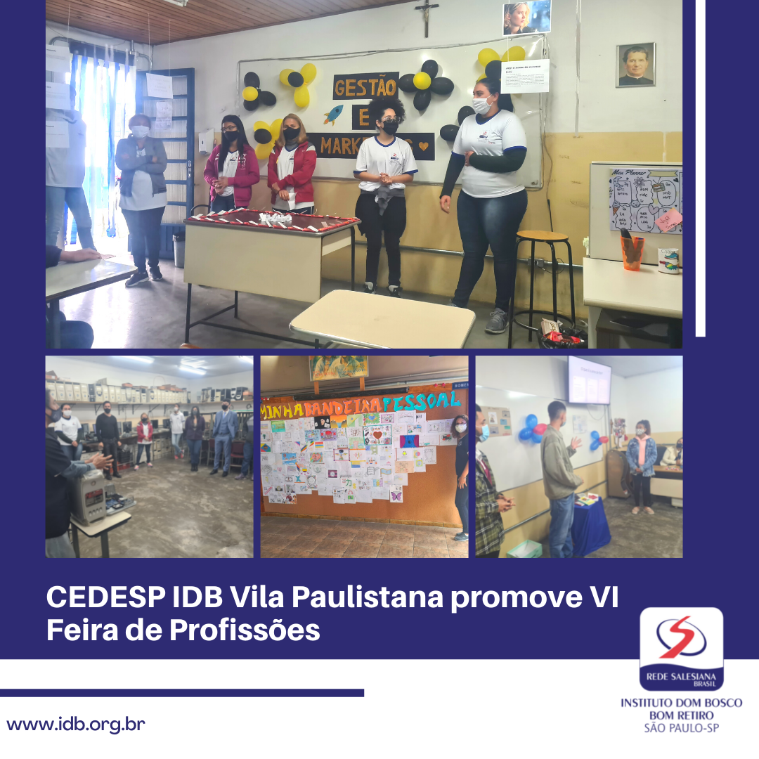 Com o objetivo de compartilhar informações sobre carreira e profissões e ofertar um momento de vivência prática e interatividade de cada curso, o Centro de Desenvolvimento Social e Produtivo CEDESP, Unidade Vila Paulistana do Instituto Dom Bosco São Paulo – SP, realizou no dia 22 de setembro a VI Feira de Profissões.