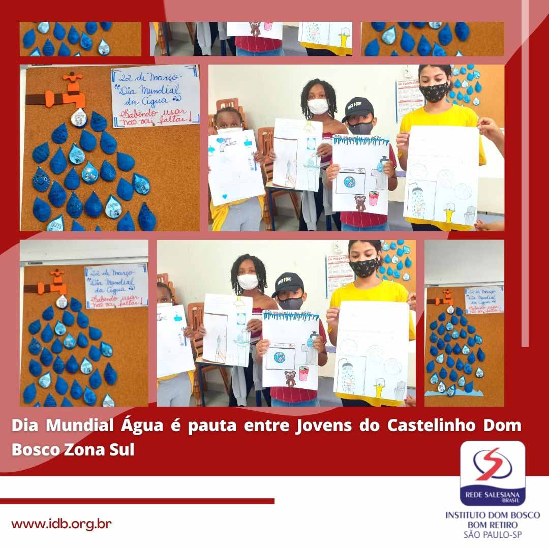 No dia 22 de Março, celebramos o Dia Mundial da Água e a turma do CCA 2 Castelinho Dom Bosco Zona Sul do Instituto Dom Bosco, através da Atividade Crescer com Valores, realizou o bate-papo e a reflexão do dia celebrado, que traz um recurso tão fundamental para as nossas vidas. O objetivo da atividade era orientar o consumo correto da água, sua importância e o uso consciente no dia-a-dia.