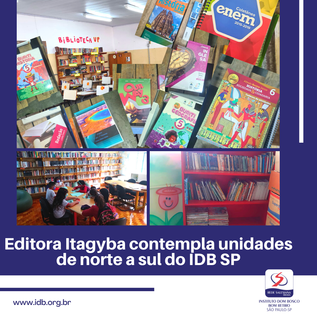 “Gentilmente a Livraria Itagyba doou diversos livros paradidáticos e didáticos para o Instituto Dom Bosco, os quais alguns foram entregues para os educandos, de acordo com o interesse e necessidade, e os demais exemplares permanecem nas Bibliotecas das unidades Bom Retiro, Vila Paulistana e Castelinho Zona Sul para uso. Os livros doados são novos e de ótima qualidade técnica e pedagógica, ampliando o foco no desenvolvimento de habilidades fundamentais para a formação integral dos educandos e mantendo o despertar para a criatividade, o encantamento pela descoberta pelo novo e o prazer de aprender. Tudo isso graças a articulação da Gaiza Carmerina, Educadora no CEDESP Vila Paulistana que viabilizou o contato entre o IDB e a Livraria.”, declarou Pérola B Brito, Gerente de Serviços da Unidade Vila Paulistana.