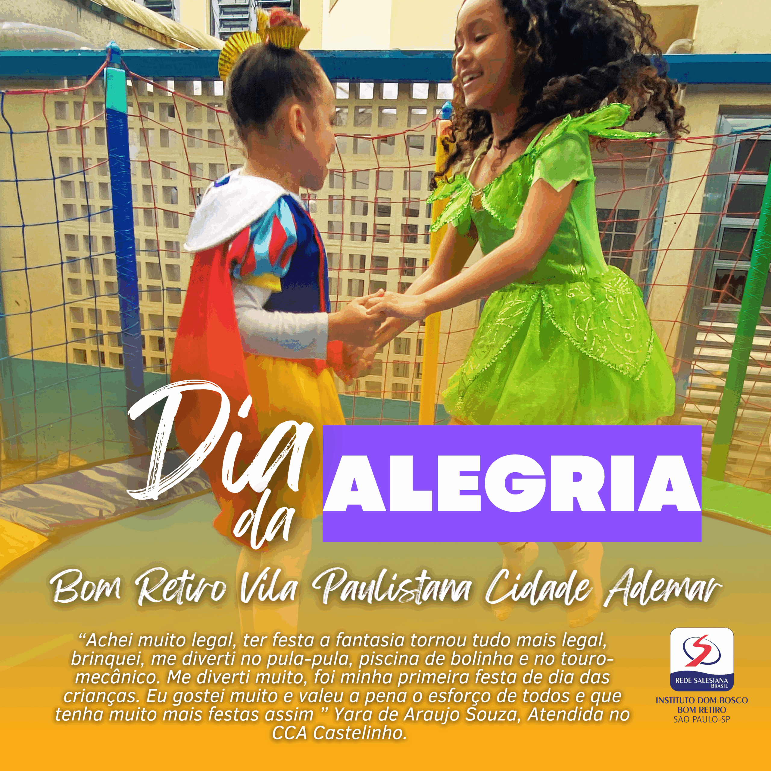 “O Dia da Alegria é tão importante, trabalhar o lúdico reforça a comunicação, a criatividade e fortalecimento das interações de forma prazerosa. Foi sem dúvida um dia leve, alegre e colorido para todos nós.”, declarou Flávia Sousa, Assistente Técnica na Vila.