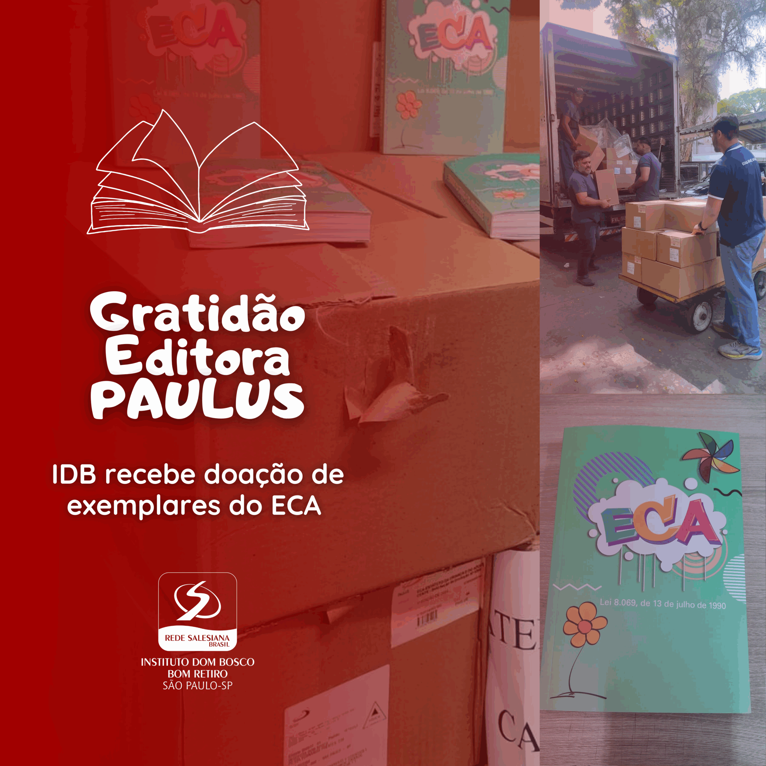 No dia 23 de setembro o Instituto Dom Bosco foi contemplado com exemplares do ECA Estatuto da Criança e do Adolescente pela Editora Paulus Social. O objetivo da parceria é de trabalhar o protagonismo com os educandos, desenvolver maior conscientização no território e articulação com os serviços da rede socioassistencial. Pâmela Fernanda, Administração do IDB e Everton Silva, Gerente do MSE na Unidade Zona Sul, fizeram o pedido via site e após alguns procedimentos, conquistaram exemplares para todas as unidades: Bom Retiro, Vila Paulistana e Cidade Ademar.
