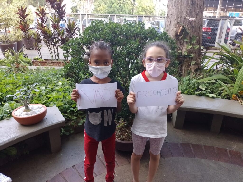 Os atendidos do CCA PROVIM da turma de Formação Humana, com Marcos Ribeiro, Educador, realizou cartazes que expressam informação e desconstrução do racismo. A turma mais jovem, guiadas por José Marcílio, Educador de Contação de Histórias, também se expressou e deixou seu recado a favor da união!