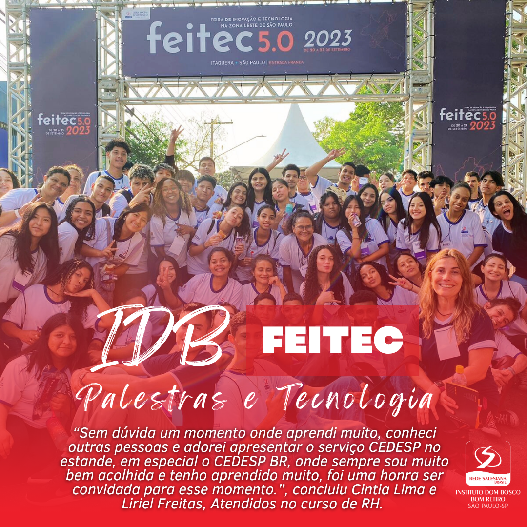 No dia 18, a Obra Social Dom Bosco – Circo Social Dom Bosco abriu as portas para a FEITEC FEITEC 5.0 – Feira de Inovação e Tecnologia Dom Bosco Itaquera. Durante a feira, ocorreram as Salas Temáticas Colaborativas Simultâneas do respectivo Congresso. Participaram representantes de Entidades e do Poder Público e o Instituto Dom Bosco marcou presença com a participação de Carlos Nambu, Colaborador do IDB ministrando palestra com o Tema: CEDESP (CENTRO DE DESENVOLVIMENTO SOCIAL E PRODUTIVO) – 30 ANOS DE HISTÓRIA, LUTA E CONQUISTA. Uma conversa para apresentar a trajetória da construção de uma política pública efetiva para a conquista da autonomia de jovens e adultos, em situação de vulnerabilidade, na cidade de São Paulo, por meio da formação profissional e do convívio e fortalecimento de vínculos. As salas temáticas do segundo período abordaram a Educação para o Mundo do Trabalho (ODSs 8, 9 e 12 – TRABALHO DECENTE E CRESCIMENTO ECONÔMICO; INDÚSTRIA, INOVAÇÃO E INFRAESTRUTURA; CONSUMO E PRODUÇÃO SUSTENTÁVEIS)