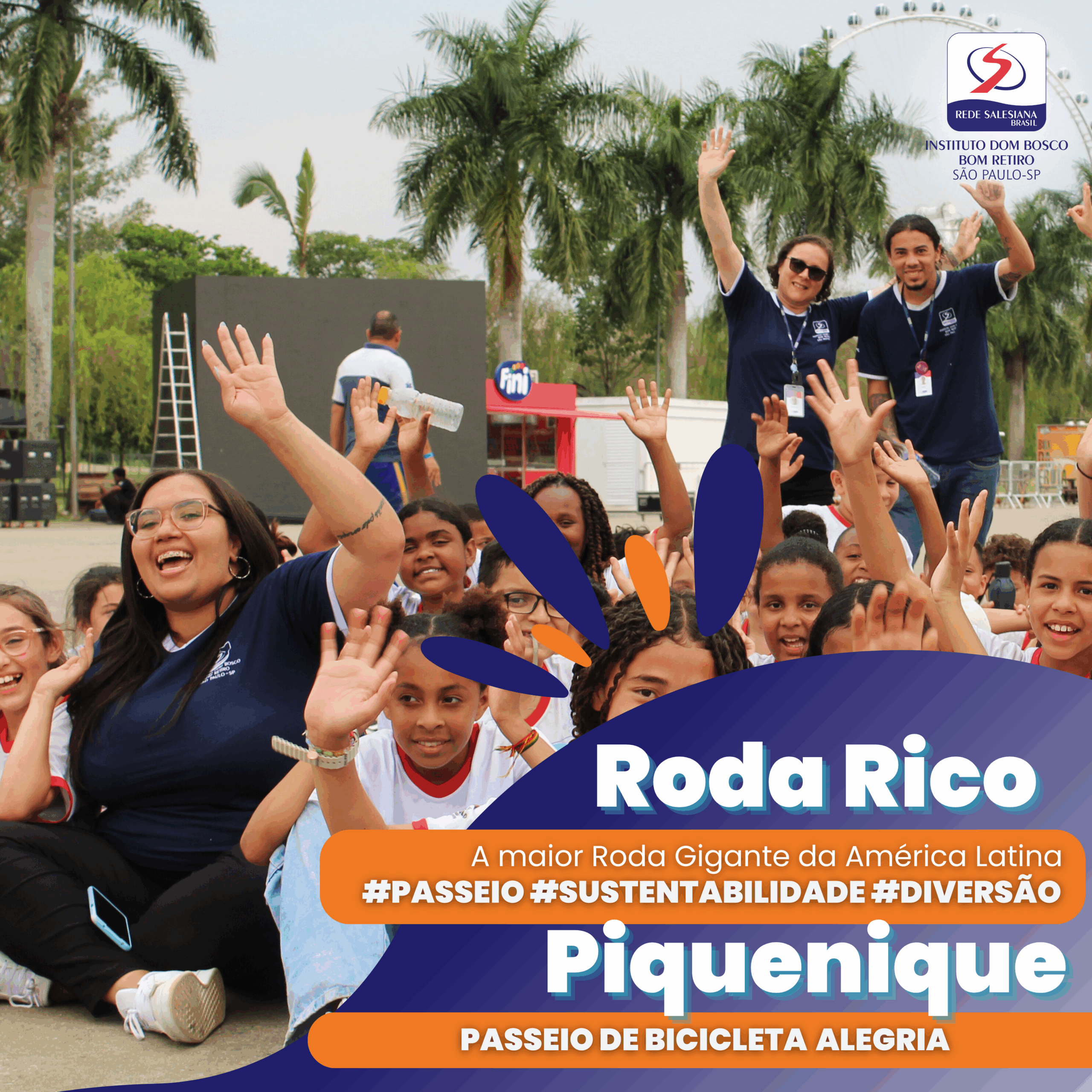 No dia 9 de outubro, o CCA Bom Retiro e CCA Castelinho Cidade Ademar do Instituto Dom Bosco, com 100 crianças com idades entre 9 e 13 anos, visitaram a Roda Rico, a maior roda gigante da América Latina, situada no parque Cândido Portinari, ao lado do parque Villa-Lobos. Com 91 metros de altura e 80 metros de diâmetro, a visita na roda foi uma projeto idealizado e implementado por Katia Guerreiro da Empresa Affinis Ideias de Negócios – Projeto de Educação Socioambiental Roda Rico. Katia, fez uma palestra no mês de outubro, explicando o processo de revitalização do Rio Pinheiro, além dos cuidados com os descartáveis e o meio ambiente na Sede do IDB. “Foi maravilhoso ter conhecido a instituição e os atendidos. Saber dos projetos socioambientais que já desenvolvem é a certeza de que estamos no caminho certo. Foi maravilhoso receber vocês e espero que tenha sido somente o começo de uma longa parceria cheia de bons propósitos.”, disse Katia.