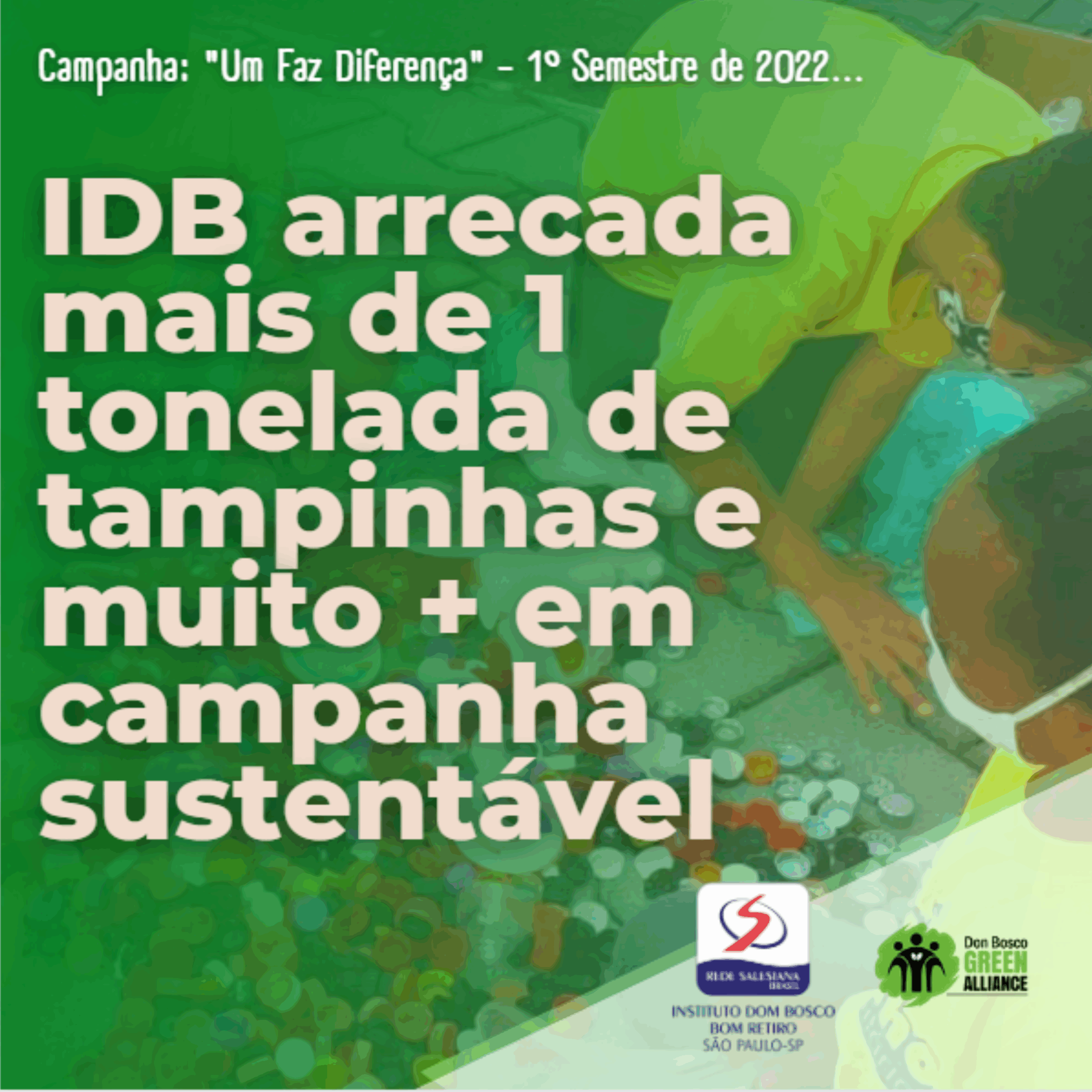 No 2º semestre de 2021, foi iniciada a campanha: “Um Faz Diferença” no Instituto Dom Bosco São Paulo SP, com os atendidos das Unidades: Bom Retiro, Vila Paulistana e Castelinho Dom Bosco Zona Sul (Relembre). O objetivo é incentivar a reciclagem de tampinhas, descarte correto do óleo de cozinha e captação de recursos através do Cupom Fiscal Solidário. A Campanha consiste em uma competição entre os Atendidos de todas as Unidades que devem trazer esses itens e somar pontos para suas respectivas turmas. No 1º semestre de 2022, foi incluído o óleo de motor na captação e somatória. A ação é uma parceria entre: Rede do Bem, Relacionamento Institucional, Educadores, Pastoral e Aliança Verde de Dom Bosco do IDB (Don Bosco Green Alliance DBGA), que em parceria, dividem tarefas, conscientizam e arrecadam juntos recursos a serem revertidos para a Obra. Os participantes são atendidos de 06 a 14 anos, 15 a 59 anos e 59 anos em diante, dos serviços CCA, CEDESP, CJ e NCI.