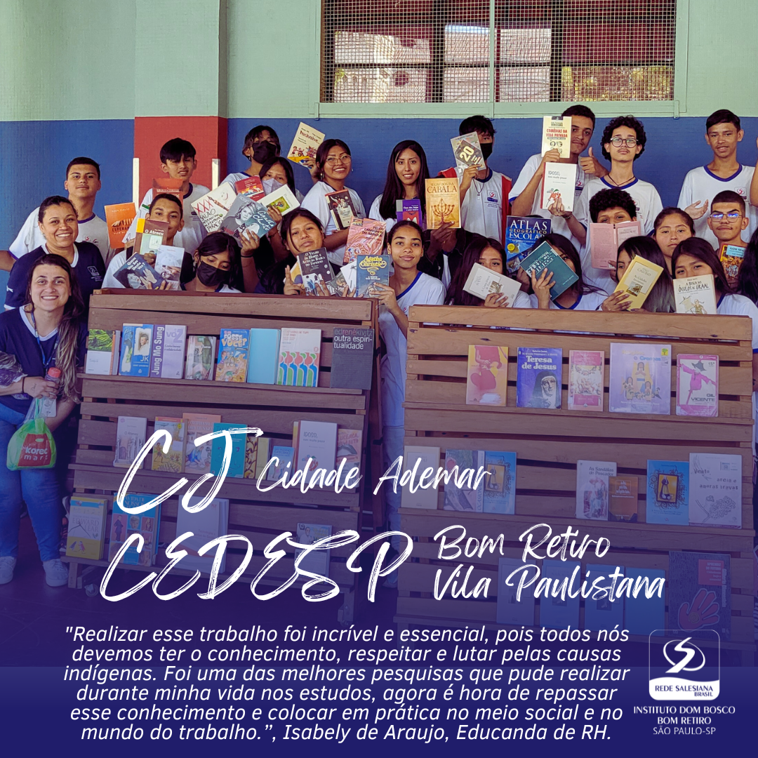 “Realizar esse trabalho foi incrível e essencial, pois todos nós devemos ter o conhecimento, respeitar e lutar pelas causas indígenas. Foi uma das melhores pesquisas que pude realizar durante minha vida nos estudos, agora é hora de repassar esse conhecimento e colocar em prática no meio social e no mundo do trabalho.”, Isabely de Araujo, Educanda de RH.