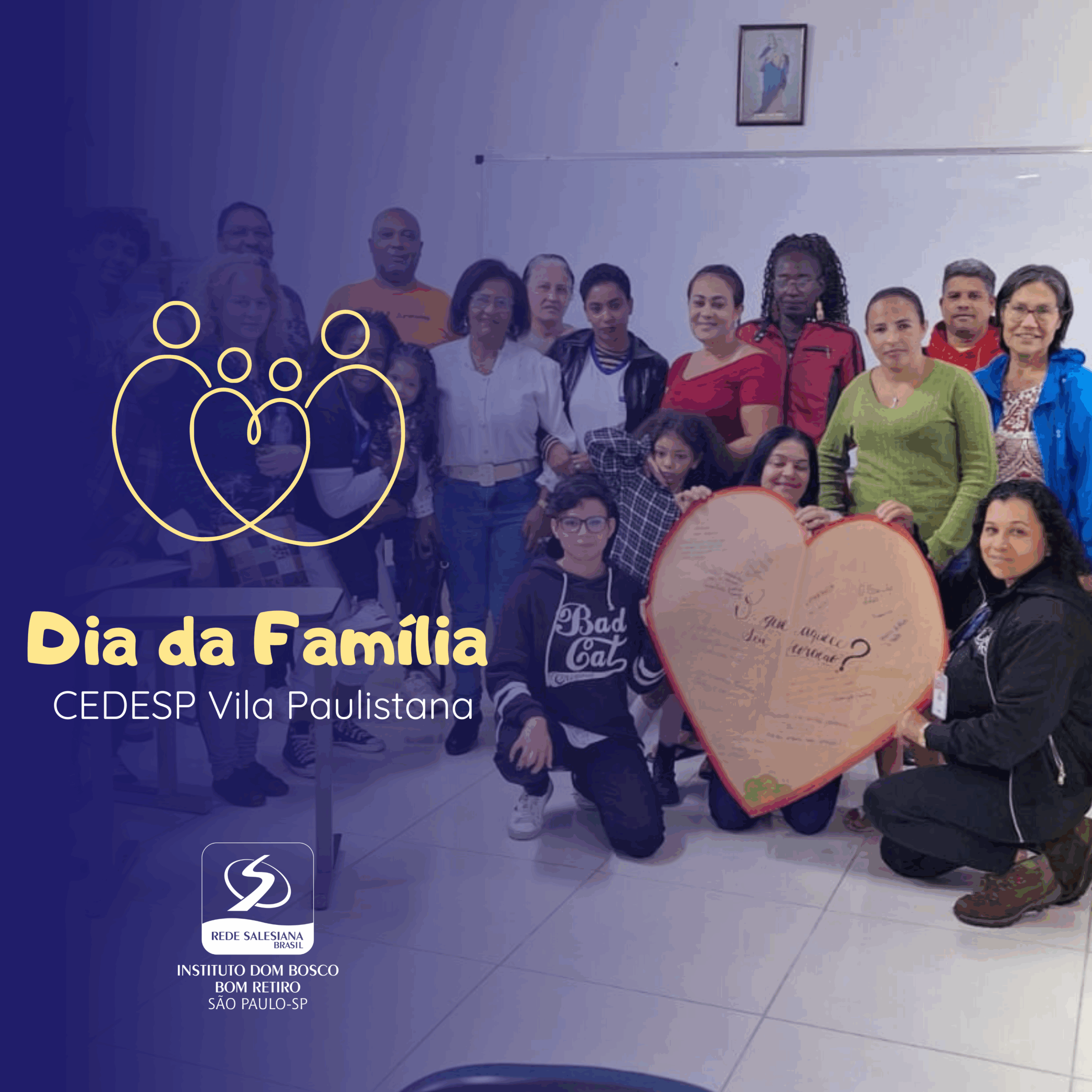 No dia 09 de Agosto, foi realizado no CEDESP Dom Bosco Unidade Vila Paulistana, o Dia da Família. Com o intuito de lembrar a tarefa cotidiana, de acolhida, escuta, aconchego, cuidado, proteção e acompanhantes enquanto Pais e Mães, o IDB abre as portas para os Atendidos e seus familiares.