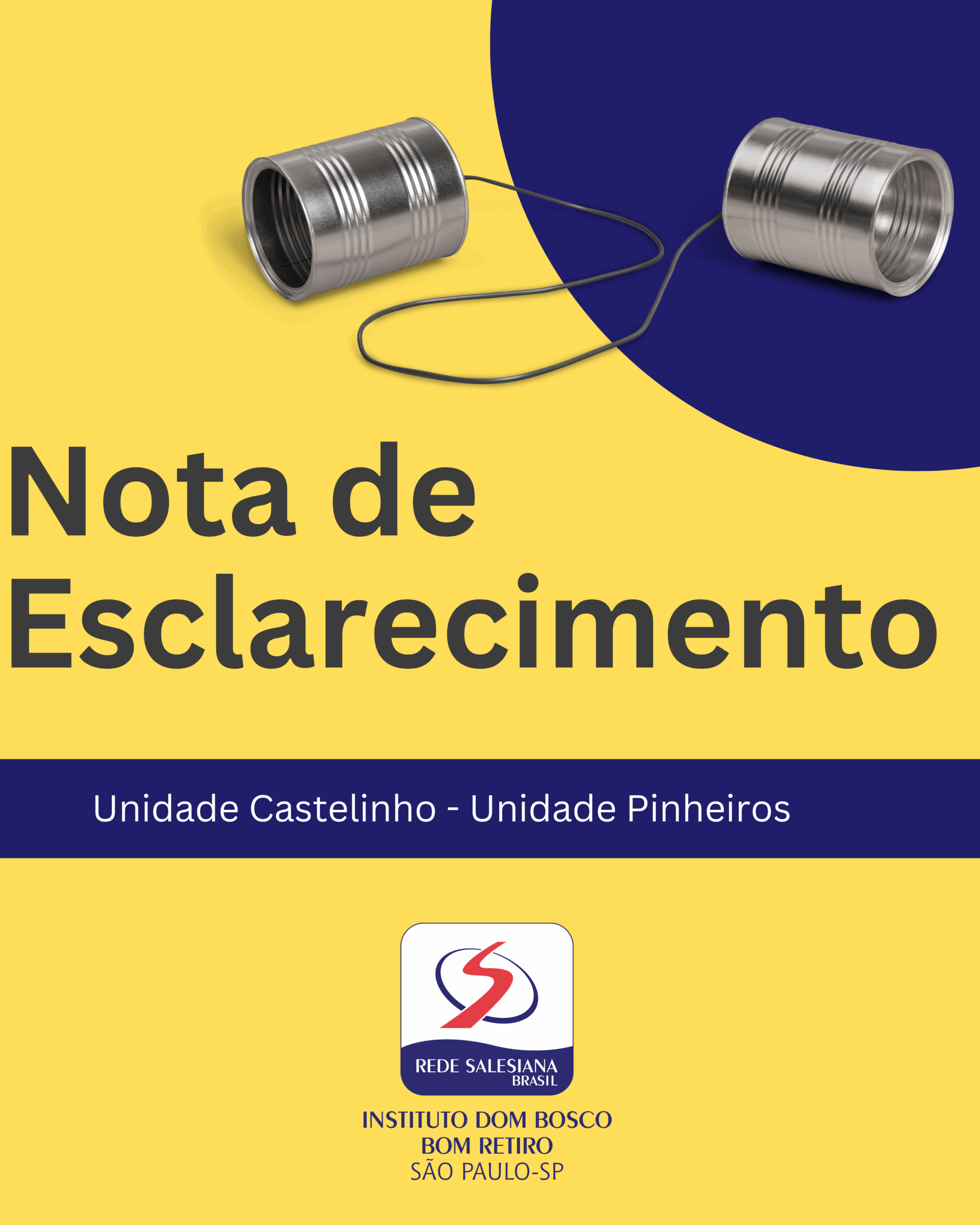 ​Diante de algumas questões administrativas, a partir de janeiro de 2025 a unidade Castelinho Cidade Ademar não estará mais sob a direção do Instituto Dom Bosco. O local segue os seus atendimentos com a ONG CRÊ-SER – https://cresersp.org.br/