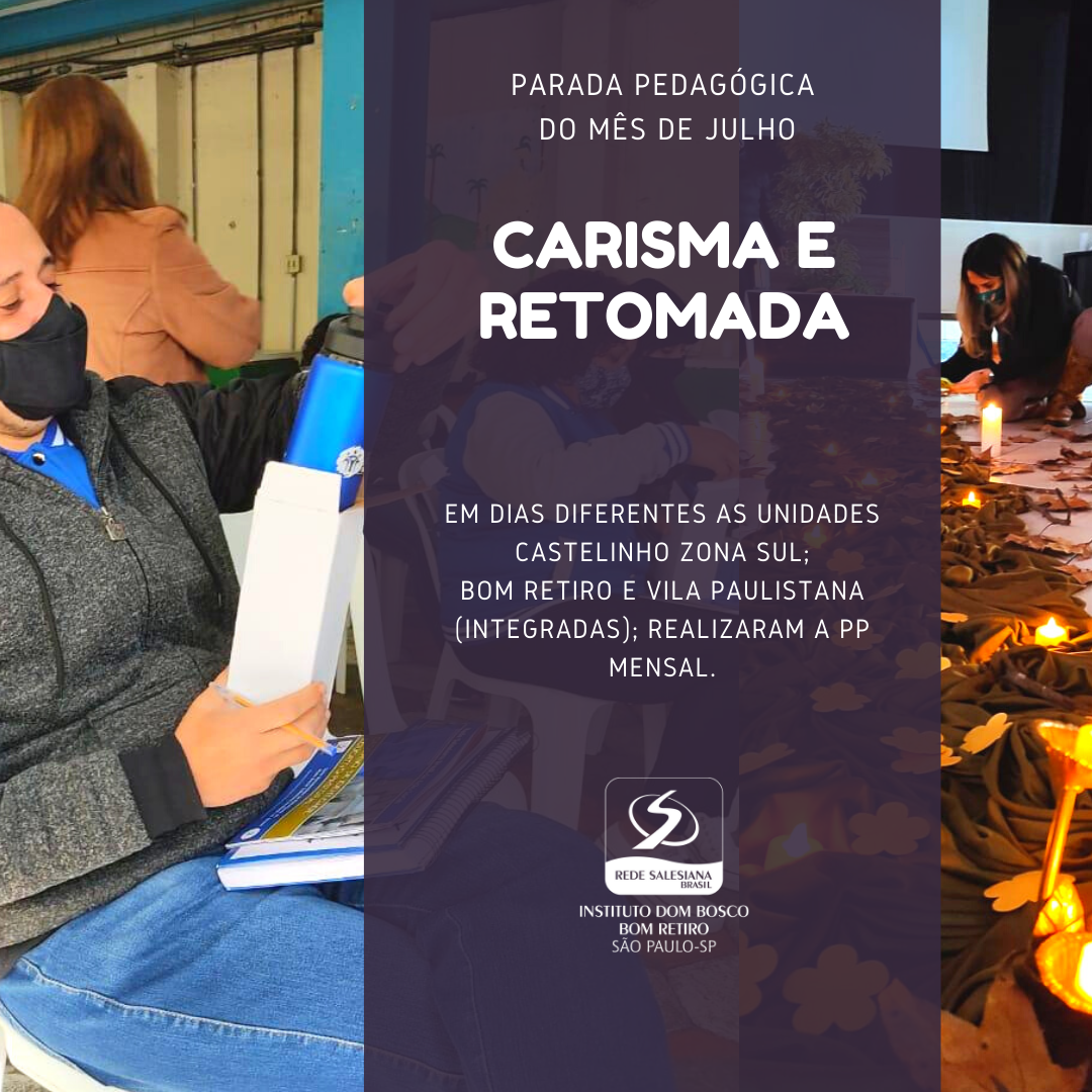 No mês de julho a Parada Pedagógica mensal aconteceu no formato presencial em ambas unidades: Castelinho Dom Bosco Zona Sul no dia 19 e Bom Retiro e Vila Paulistana no dia 30. Desde fevereiro deste ano (2021) o momento acontecia via on-line devido o agravamento da pandemia provocado pelo coronavírus. Com 99% da equipe vacinada, o momento, seguindo os protocolos sanitários, teve sua retomada. O Castelinho DB ZS, é uma nova unidade assumida pelo Instituto Dom Bosco desde o início do ano, portanto, as paradas pedagógicas acontecem em dias diferentes temporariamente, é somente o tempo de que a mais nova casa da região Sul e o IDB possam alinhar missão, visão e valores.