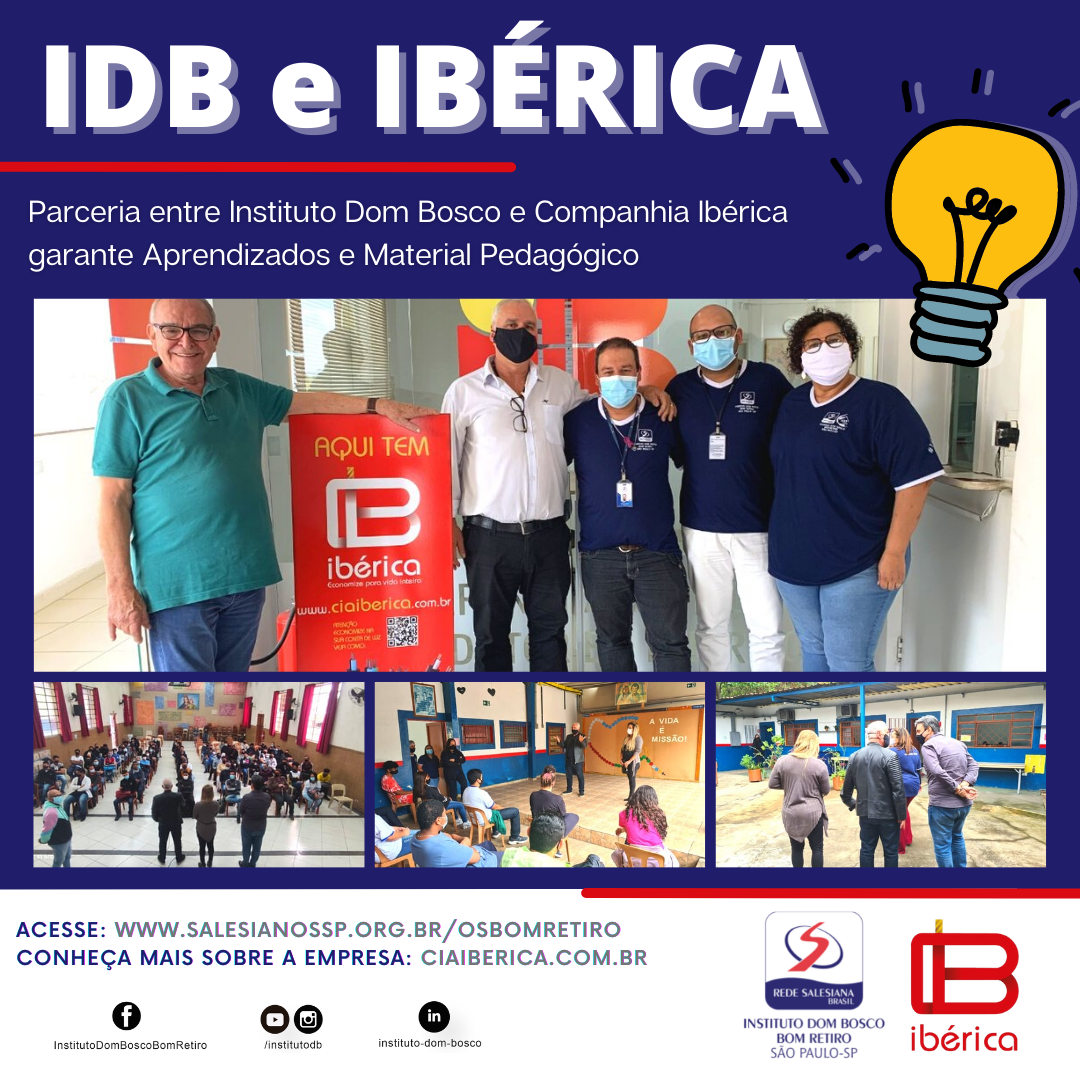 O Instituto Dom Bosco São Paulo – SP, agradece imensamente a Cia. Ibérica por acreditarem em nossa missão! Quando carregamos o slogan de que juntos somos mais fortes, nos referimos a todo tipo de união de quem acredita no jovem e no adulto. Fornecer subsídios é uma forma de nutrir a esperança. Muito obrigado, sejam imensamente bem-vindos a família IDB!