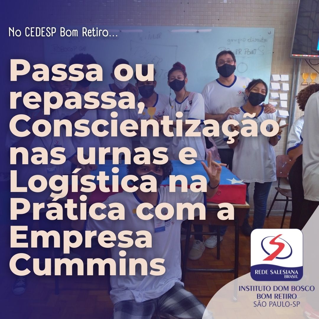Passa ou Repassa com temática de comunicação, conscientização nas urnas e logística na prática com a Empresa parceira CUMMINS, veja os últimos acontecimentos do Centro de Desenvolvimento Social e Produtivo CEDESP do Instituto Dom Bosco São Paulo