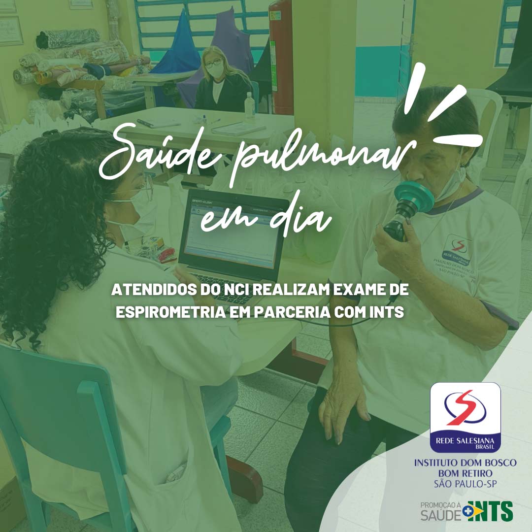 No dia 07 de abril, os Atendidos do Núcleo de Convivência do Idoso NCI do Castelinho Dom Bosco, Unidade Zona Sul, em parceria com o Instituto Nacional de Tecnologia e Saúde INTS, realizaram a Ação de Saúde, com o objetivo de avaliar a saúde pulmonar dos Atendidos. No primeiro momento, os participantes responderam um questionário para identificação e compreensão de seu histórico de saúde, na sequência, aqueles que estavam aptos, realizaram o exame de Espirometira.