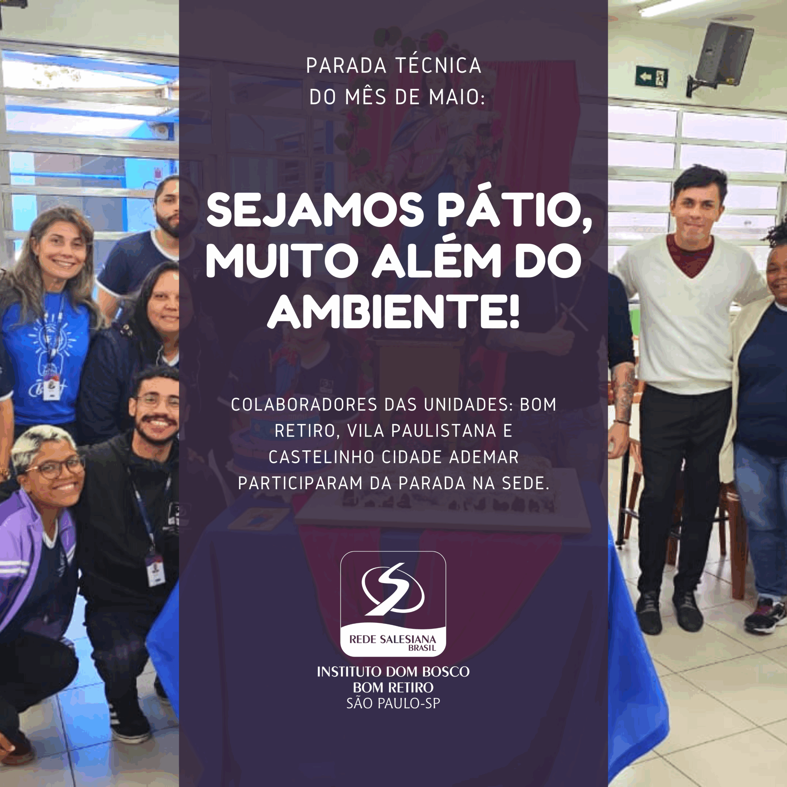 No dia 26 de maio, foi realizada na Sede do Bom Retiro a Parada Técnica mensal com a participação dos Educadores do Instituto Dom Bosco de todas as Unidades (Bom Retiro, Vila Paulistana e Castelinho DB Cidade Ademar). Iniciando as atividades do dia, a turma da Pastoral em comemoração ao mês das mamães, realizou uma celebração para todas as mamães presentes e também a mamãe dos colaboradores, além da tradicional “Queima das Cartinhas” de Nossa Senhora Auxiliadora. No segundo momento, a Instituição recebeu Maria Tereza, Bacharel em Teologia, Salesiana formada em Roma. Além de contar sobre a sua trajetória, a conhecida “Tete”, falou sobre o Sistema Preventivo na prática, reforçou que: “O sistema preventivo não é um método, é uma mentalidade!”. Entre diversas partilhas significativas, Tereza chamou a atenção para o cuidado pessoal, lembrou que o pátio é o lugar dentro de nós, onde as pessoas entram, o que não necessariamente tem a ver com o ambiente físico. Em uma manhã calorosa, trouxe diversas reflexões acerca de vida pessoal, carreira e missão. “O ambiente tem a dimensão de transformar!”, concluiu a convidada. Durante o dia, foi realizada a consulta laboral com os Educadores de acordo com a vigência de suas contratações.