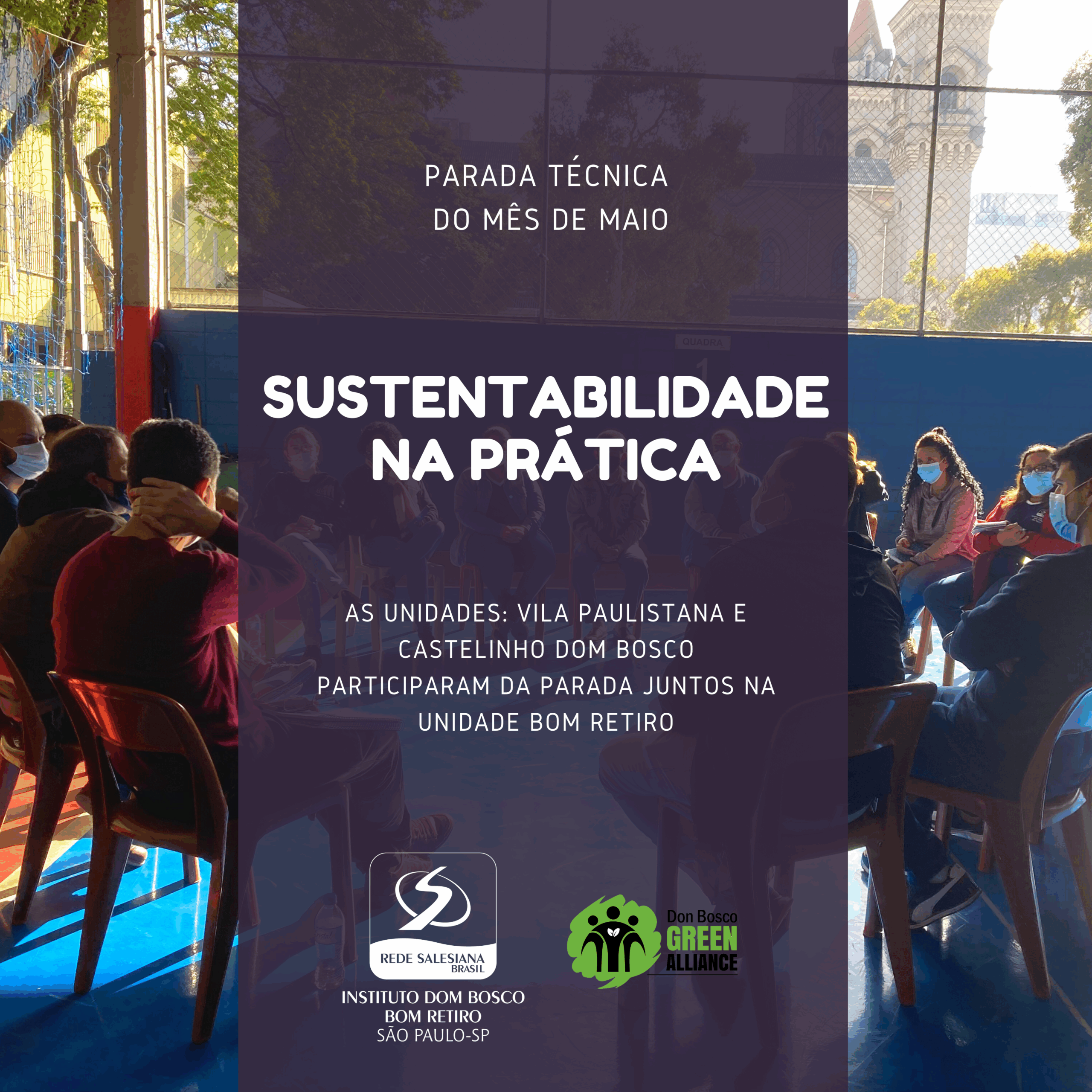 No dia 27 de maio, foi realizada a Parada Técnica do Instituto Dom Bosco São Paulo, com a presença dos Educadores de todas as Unidades: Castelinho Dom Bosco Zona Sul, Vila Paulistana Zona Norte e Bom Retiro. A realização do momento aconteceu na Unidade da região central, com a Equipe Aliança Verde de Dom Bosco e Susi Uhren, Ambientalista na empresa Singular Ambiental.