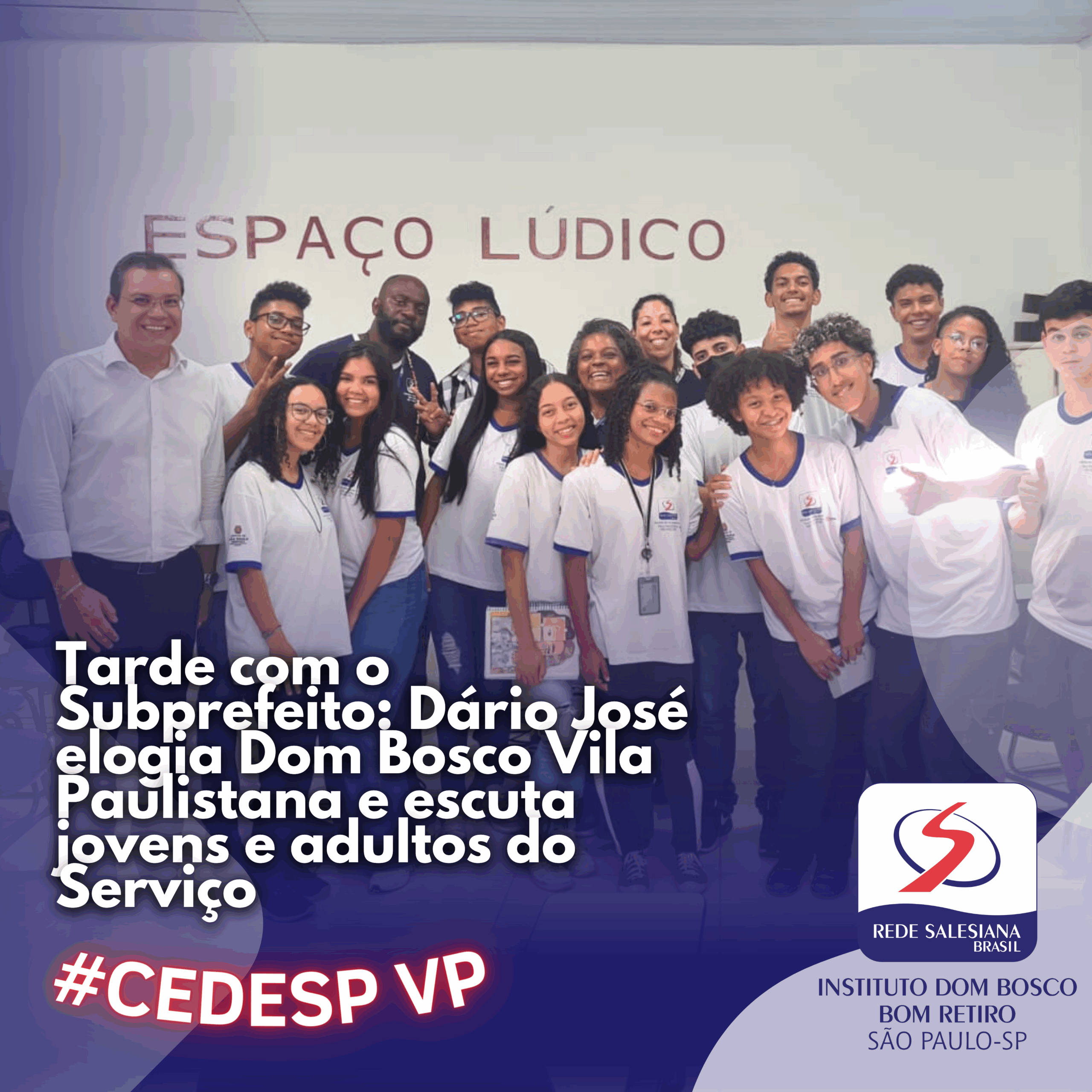 No dia 04 de abril, o CEDESP Vila Paulistana do Instituto Dom Bosco, recebeu a visita do Subprefeito Jaçanã Tremembé, Dário José Barreto. O objetivo do Serviço ao receber o Subprefeito, era apresentar o serviço sociassistencial, aproximando-o da comunidade, para fazer sugestões de melhorias. Aproveitando, os representantes do Jornal Cria VP entrevistaram Dário e fizeram propostas. Já na próxima edição, teremos essas informações.