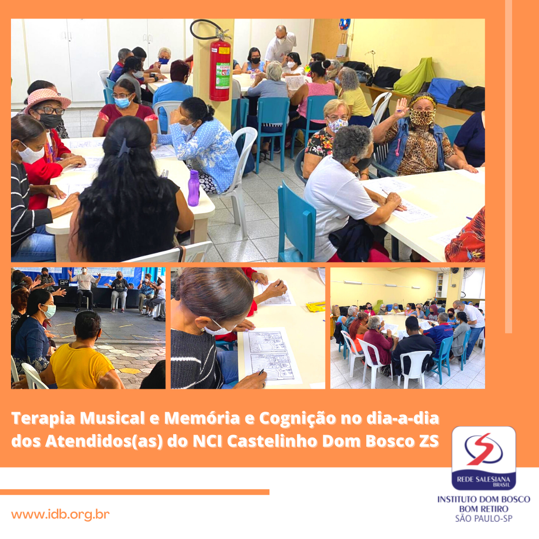 No dia 08 e 10 de fevereiro, os(as) Atendidos(as) do Núcleo de Convivência do Idoso NCI do Castelinho Dom Bosco Zona Sul – Instituto Dom Bosco São Paulo – SP, iniciaram as aulas de Terapia Musical e Memória e Cognição com Eduardo Campos Rodrigues, Oficineiro. Cada atividade acontece em dias diferentes, mas ambas foram inicialmente realizadas no mesmo espaço: o salão de Costura da Unidade. Entre os diversos objetivos, estimular a Coordenação motora, a convivência e melhorar a qualidade de vida dos Idosos(as), estão entre as propostas. O momento é resultado de uma Parceria com o Instituto Pinheiro.