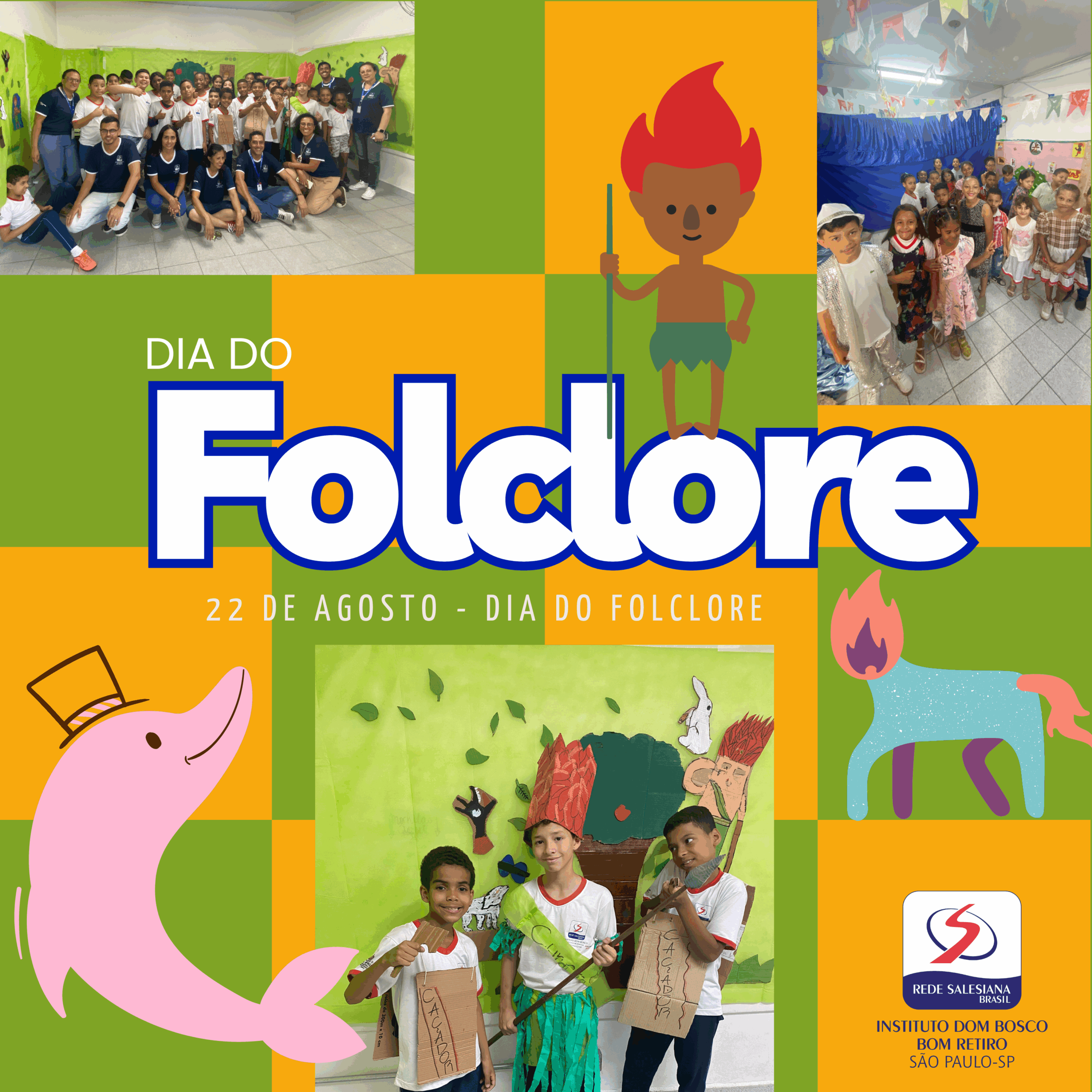 No dia 22 de agosto comemoramos o dia do Folclore Brasileiro e a turma do Castelinho Dom Bosco Unidade Zona Sul, aproveitou para celebrar essa cultura tão brasileira.  Para aprender mais sobre as lendas, nas salas, com Educandos e Educadores, cada sala teve uma temática, com a sua lenda em específico, a decoração, trajes e encenações foram de arrepiar e admirar, afinal, o Folclore traz figuras como: Lobisomem, Saci-Pererê, mas também muita dança e regionalidade com a lenda do Boto cor de rosa, por exemplo. O objetivo deste momento, é contar para os educandos de forma lúdica, sobre a diversidade cultural, abordando as mais conhecidas do nosso País, despertando o lado artístico de cada criança com a construção das salas. Entre as lendas citadas, a do curupira também ganhou a sua versão. Cada sala temática foi aberta para visitas dos funcionários e para os pais no período da noite no encontro de famílias, as crianças se apresentaram para todos.